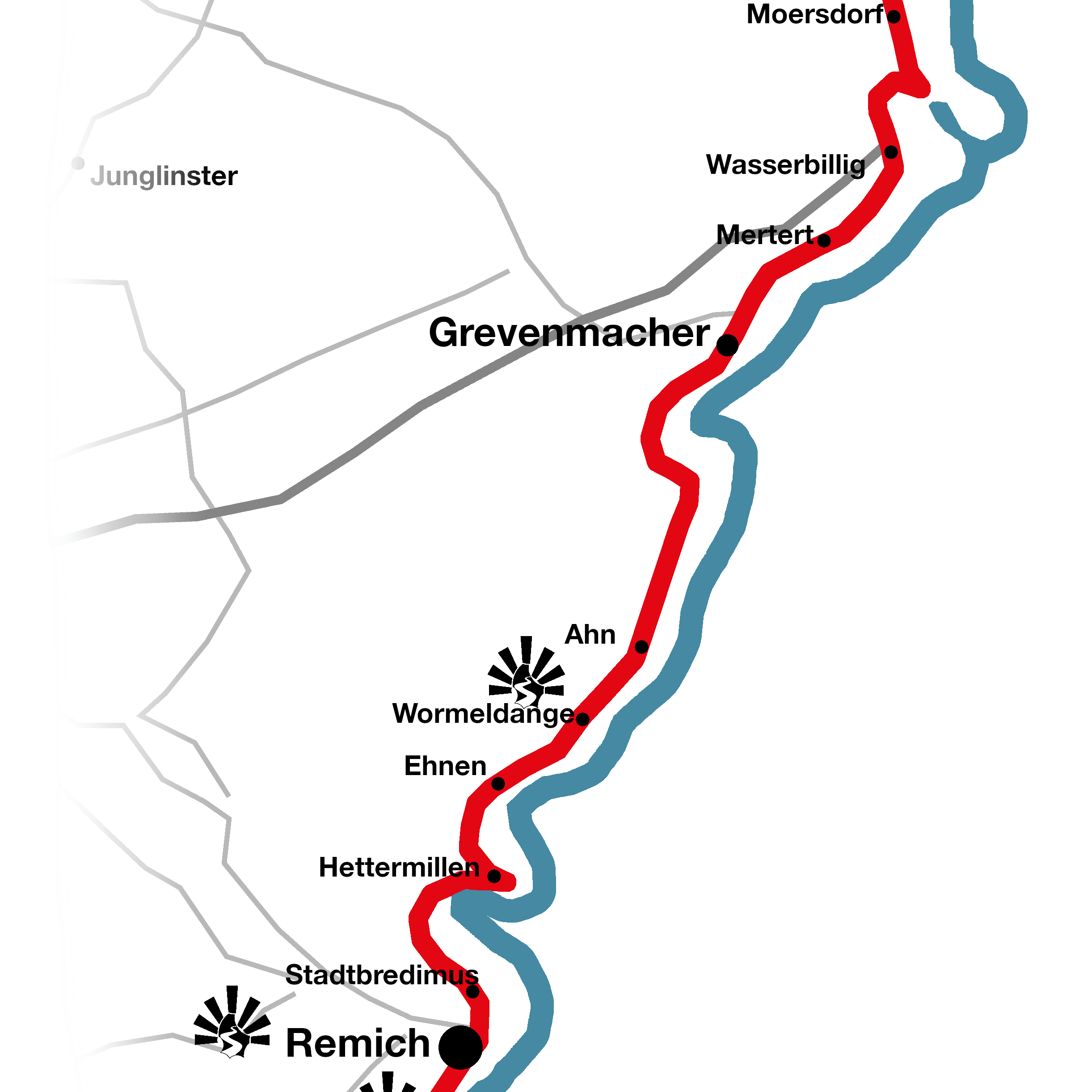 - Die Tour führt an der Mosel, der Weinregion des Landes, entlang.