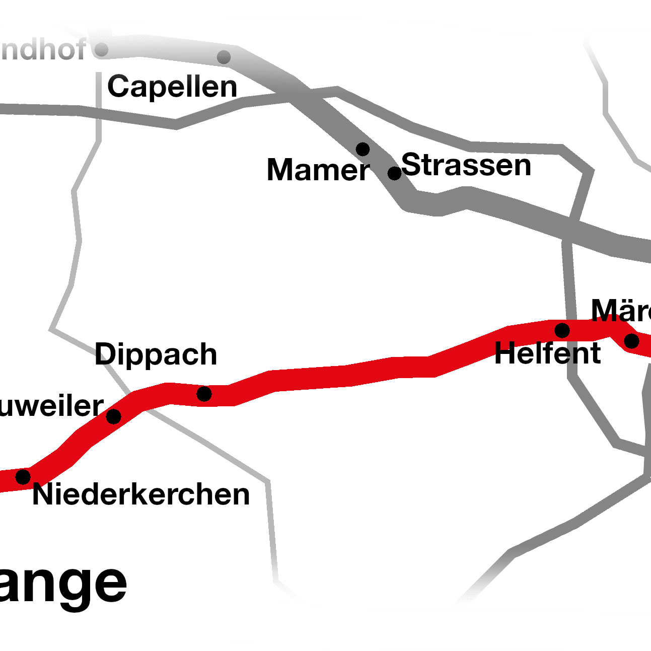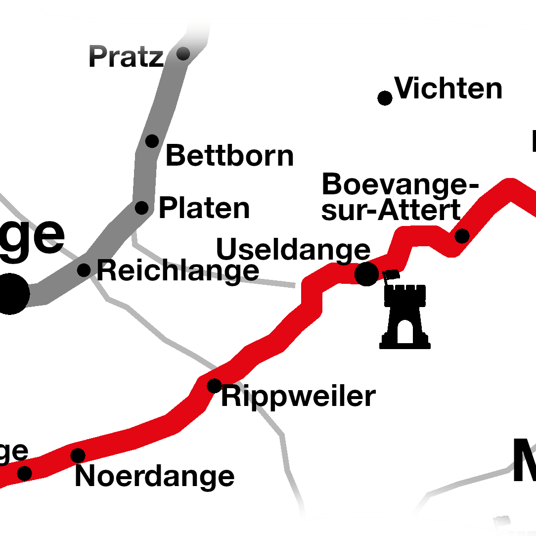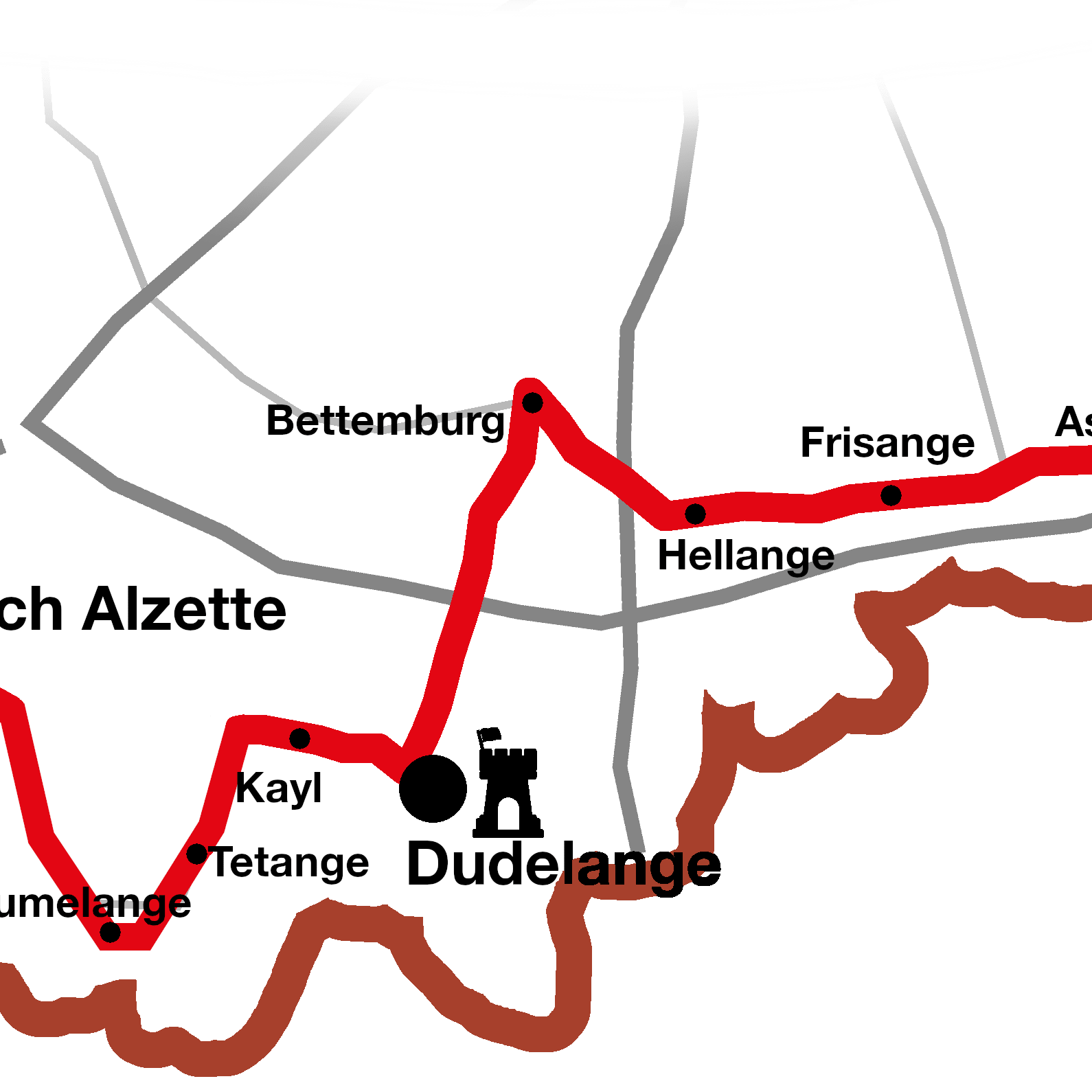 - Petange (nahe Dreiländereck zu Frankreich Belgien / SW) – Auch von diesem Punkt aus lässt sich die Tour in Angriff nehmen.